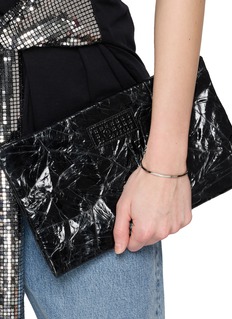 MM6's sleek cuff bracelet features the signature numeric logo engraved along a minimalist band. The open-ended design with 'Made in Italy' stamp ensures adjustable comfort, while the slim profile delivers refined, architectural elegance. A versatile staple that brings subtle brand recognition to any look.
