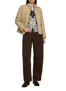 Heritage charm is reimagined with a softer, modern tactility in this wool-blend cardigan by MO&Co.. Rendered in a Donegal-inspired knit, its speckled texture sets the stage for a bold argyle motif that feels both nostalgic and graphic. The classic crew neckline and clean button front make it an easy layering piece for denim, pleated skirts, or tailored trousers.