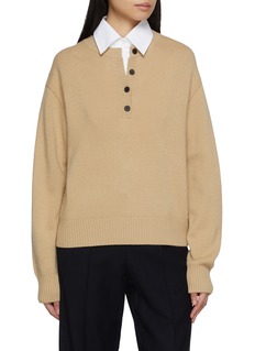 A quietly clever design, this MO&Co. knit sweater creates the illusion of layered dressing with a crisp shirt collar peeking from a soft henley-style knit. The contrast of tailored shirting and relaxed woollen texture brings dimension to an everyday silhouette, offering instant polish without the bulk of true layering. Style it with tailored trousers or denim for an effortlessly composed look.
