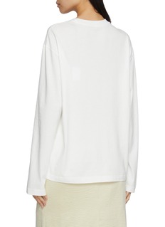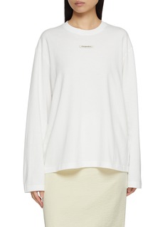 A minimalist essential with a soft, fluid drape, this long-sleeve top by MO&Co. is designed with dropped shoulders that create an effortless, loosely structured silhouette. The discreet logo patch at the chest punctuates its clean aesthetic, making it a versatile layer for refined off-duty styling or paired with tonal separates for a modern monochrome look.