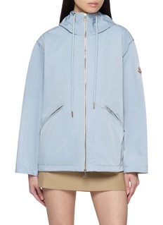 Clean lines and practical detailing define this lightweight jacket by Moncler. Crafted from smooth polyester, it features a streamlined zip front with adjustable drawstrings at the hood and hem, offering adaptable coverage. An effortless outer layer for transitional days, from city commutes to relaxed weekend wear.
