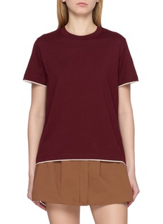 Rendered in a rich red hue, this T-shirt from Moncler is a go-to staple for your daily dressing. Detailed with a contrast scalloped trim, this piece lends a feminine touch to your edits.