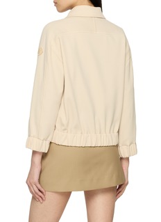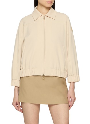 Soft structure meets understated elegance in this zip-up cardigan from Moncler, defined by its fluid drape and pared-back finish. Designed with a shirt-style collar and gently elasticated trims, it works seamlessly for polished daytime looks or refined travel layering.