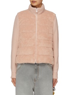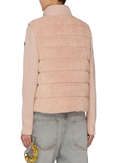 Elevate your style with this cardigan from Moncler. Offering warmth and style, it can be worn as outerwear in warmer months thanks to its teddy front and knitted sleeves. Crafted in tonal pink, this piece adds a contemporary touch to your wardrobe.