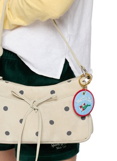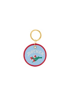 Mother presents a nostalgic patch-style keychain with embroidered floral motif and retro lettering for playful vintage-inspired styling. The circular medallion form with contrast piping and polished metal ring delivers laid-back Americana charm, while whimsical botanical detailing and sentimental sentiment create a distinctive accessory for adding personality and lighthearted character to keys or bags.
