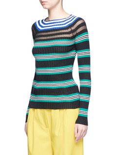 MRZ revamps winter wardrobe essentials with its signature bold lines to present this sweater. Crafted from cotton-blend rib knit, this number is cast in a mix of colourblocked stripes to pep up your daily sets with a punch of colour. This style is further panelled with sheer inserts along the shoulder to reveal a sensual glimpse of skin.
