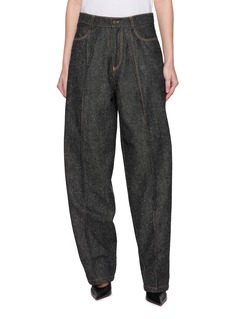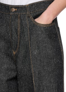 Embrace the timeless allure and refined craftsmanship of these NACKIYE trousers, meticulously tailored to offer both style and comfort. Crafted from a richly textured wool blend, these trousers feature a high-rise waist that elegantly cinches for a flattering silhouette. The detailed contrast stitching and wide-leg design enhance the classic aesthetic, making them a versatile piece for both office wear and casual outings.