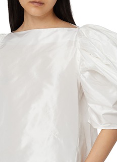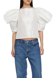 An icon in Nackiyé’s universe, this silk taffeta top celebrates volume as a form of expression. Artisanal techniques give the fabric a softly luminous character, while adjustable puff sleeves invite playful styling—equally striking with denim by day or tailored pieces by night.