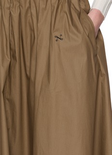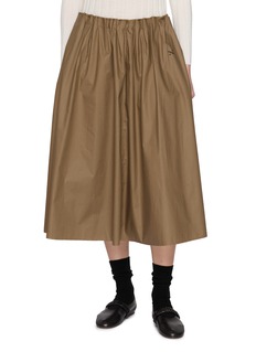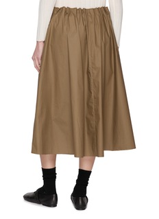 Pleated midi skirt in a warm camel brown shade blends effortless movement with minimalist sophistication, its soft gathers and flowing silhouette creating a timeless, understated elegance. Perfect for modern versatility and quiet luxury.