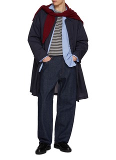 Nanamica's classic five-pocket jeans feature a relaxed wide-leg silhouette with authentic denim detailing including contrast stitching and rivet hardware. The mid-rise waist and straight cut offer timeless versatility. A refined everyday staple that pairs Japanese craftsmanship with enduring American workwear heritage.