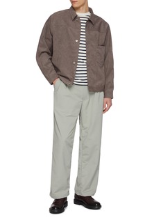 The nanamica Synthetic Leather Short Jacket reimagines the classic short jacket silhouette with a modern, sustainable edge. Crafted from premium Ultrasuede®, it offers a remarkably soft hand feel and rich color depth, with 30% of its polyester derived from plant-based materials. Featuring a relaxed fit and innovative split yoke sleeves that enhance arm mobility, this jacket delivers sophisticated style without compromising on everyday comfort, seamlessly transitioning from urban settings to casual outings.