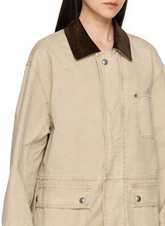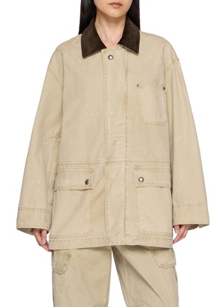 Grounded in utilitarian codes, this denim jacket is crafted with both comfort and control. Defined by its washed finish and subtle splatters, this piece channels a live-in look that pairs effortlessly with Noir's matching cargo pants.
