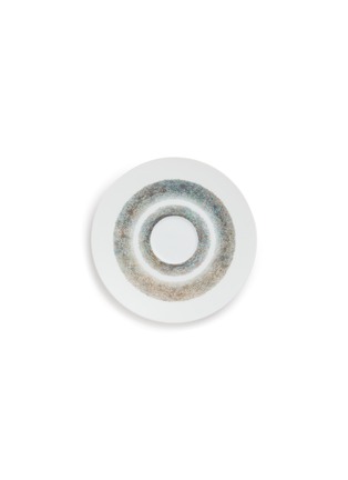 Elevate your tea or coffee experience with this artistically crafted saucer. The design features a mesmerizing concentric circle pattern in soothing shades of blue and grey, set against a pristine white background. Made from high-quality ceramic, this saucer not only serves as a protective base for your cup but also as an elegant statement piece.
