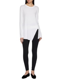 An elevated essential with quiet intention, this long-sleeve top drapes fluidly against the body, defined by a clean side slit that introduces movement and ease. Designed for layering or solo wear, it pairs effortlessly with leggings or tailored pants for understated, everyday refinement.