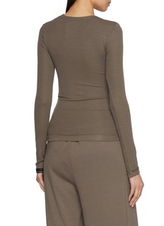 Refined in restraint, this long-sleeve top from Nylora is crafted in a soft ribbed Tencel blend that drapes close to the body with a second-skin feel. A subtle front design seam and raw-edged trims lend a deconstructed note, making it an elevated essential for layered, everyday dressing.