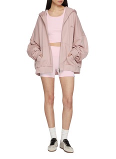 • Woven brand logo tab at hem