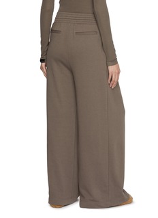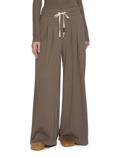 Cut from super-soft mid-weight terry, these pants fall fluidly through a wide-leg silhouette for an effortless, relaxed feel. A smocked elasticated waistband with drawstring brings comfort and ease, while subtle pleats and slant pockets elevate everyday loungewear styling.