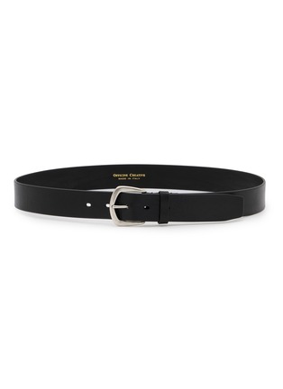 Officine Creative's belt embodies Italian craftsmanship with sleek contemporary design. The streamlined accessory features polished horseshoe buckle with refined finish, adjustable multi-hole closure, tonal keeper loop, and gold-embossed brand signature at interior. Timeless versatility for modern wardrobe essentials.