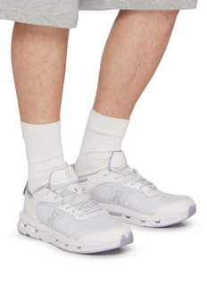 Step into tranquility with On's sneakers. These sleek, grey and white shoes offer a minimalist aesthetic while providing peak performance for both urban and trail environments.