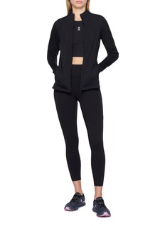 Experience the perfect blend of performance and style with this On Running performance jacket. Designed in a sleek black, this jacket is crafted from high-tech, breathable fabric that ensures comfort and flexibility during any activity. The streamlined fit enhances your silhouette while providing ease of movement, and the high collar offers additional warmth and protection against the elements. A full-length zipper allows for adjustable ventilation, making it ideal for varying workout conditions.
