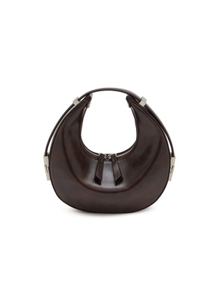 A masterpiece of contemporary design, this crescent-shaped bag showcases architectural excellence through its curved silhouette. Crafted in butter-soft leather, the minimalist form is enhanced by subtle hardware details and a distinctive top handle. The clean lines and neutral palette make it a versatile addition to any modern wardrobe.
