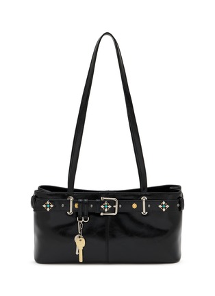 A sophisticated interpretation of utilitarian elegance, this shoulder bag showcases Western-inspired details. The distinctive belt detail and key charm add heritage appeal, while the structured silhouette maintains contemporary refinement.