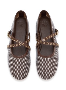 These Pedder Red flats are a testament to refined craftsmanship, featuring a textured taupe upper punctuated by a studded pattern that exudes a subtle sparkle. The cross-strap design, adorned with a gold-tone buckle, adds a sophisticated twist to the classic pointed toe silhouette.
