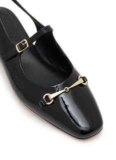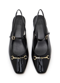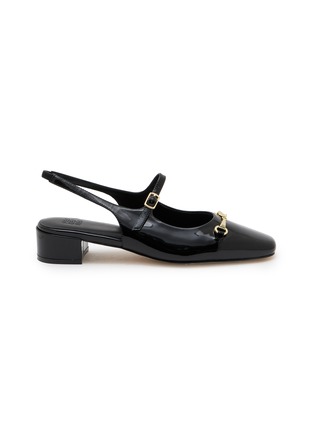 Pedder Red's slingback Mary Jane pumps merge classic elegance with contemporary hardware detailing. The design features a glossy finish, adjustable ankle strap with buckle closure, and signature horsebit accent across the vamp, set on a comfortable block heel. Sophisticated styling and versatile proportions make these pumps essential wardrobe staples.