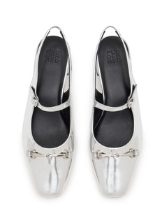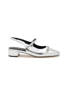 Pedder Red's slingback Mary Janes capture retro-modern allure with lustrous metallic finish. The versatile silhouette features adjustable ankle strap with buckle closure, charming bow detail at vamp, almond toe shape, cushioned insole, and low block heel. Effortlessly chic from office to evening—contemporary femininity with vintage appeal.