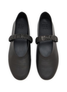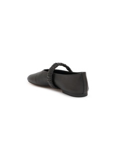 These Pedder Red shoes are a masterpiece of understated elegance, featuring a smooth black leather finish that exudes sophistication. The ruched strap detail adds a contemporary twist to the classic flat silhouette, offering both style and comfort.