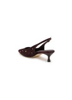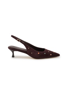 Elevate your ensemble with these exquisite Lajos pumps, meticulously crafted in supple suede leatheer. The elegant pointed toe and slender kitten heel epitomize sophistication, enhanced by a smattering of gold-toned studs for an edge.