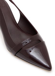 Pedder Red's slingback pumps blend modern sophistication with tonal paneling across the pointed-toe silhouette. The design features a glossy finish with matte accent straps, adjustable ankle buckle closure, and sculptural kitten heel for elegant lift. Contemporary detailing and refined proportions make these pumps versatile wardrobe essentials.