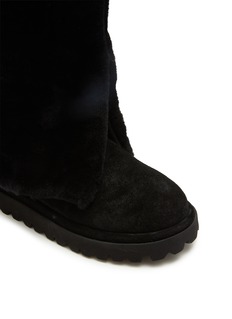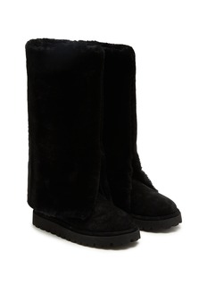 Experience the ultimate in cosy luxury with Pedder Red's knee-high boots. Crafted in sumptuous suede and a textured shearling shaft. The statement-making fold-over design adds comfort and personality, making them a must-have for this winter season.