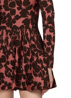 This floral mini dress by Pepa Pombo radiates youthful dynamism, sculpted in a jacquard knit that contours the body before releasing into a softly flared skirt. Long sleeves and a high neckline balance the playful hem, creating a silhouette that moves with expressive rhythm—perfect for evenings out or statement daytime styling.