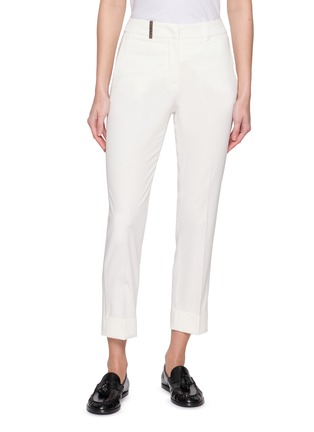 Clean-lined and quietly refined, these pants by Peserico are crafted from light cotton stretch gabardine for a smooth, flexible handle. Cropped with turned-up cuffs, they strike a balance between tailored polish and everyday ease—ideal for modern workwear or effortless weekend styling.