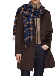 Wrap yourself in the timeless elegance of Piacenza 1733 with this luxurious silk cashmere scarf, featuring a classic tartan pattern in rich shades of blue and gold. Expertly crafted from the finest wool, this scarf offers both unparalleled warmth and a touch of aristocratic charm.