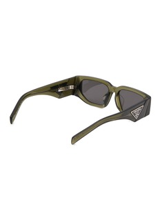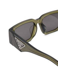 Rendered in a smoky transparent acetate, these full-fit sunglasses reveal Prada’s sculptural precision through clean, elongated lines and striking depth of colour. Wide temples anchored by the signature metal triangle logo lend a bold architectural rhythm—an effortless statement for elevated daytime styling.