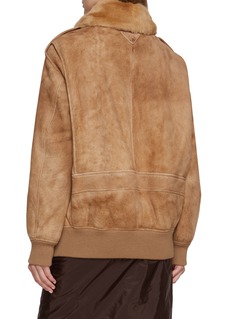 Luxury meets utility in this Prada jacket. The soft, supple suede is complemented by a plush fur collar, adding warmth and texture. Its oversized fit and functional pockets blend practicality with high-end style, making it a versatile layering piece for any season.