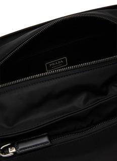 Embrace the epitome of functionality and style with this Prada nylon shoulder bag. Crafted from durable nylon, it features a sleek black finish, complemented by a polished triangular Prada logo. This versatile bag offers multiple compartments and an adjustable strap, making it ideal for everyday use. Perfect for those who appreciate luxury and practicality in their accessories.