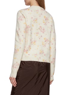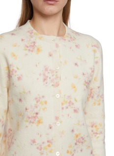 A delicate yet bold statement, this Prada cardigan features soft floral motifs on a luxurious knit. The pastel hues and plush feel create a delicate contrast, making it a versatile layering piece for any occasion. Pair it with a pleated skirt or tailored trousers to add a touch of elegant whimsy to your ensemble.