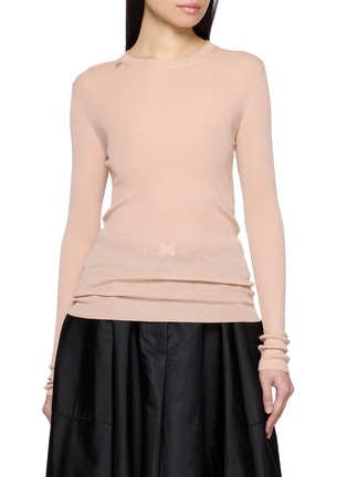PRADA - Long Sleeve Ribbed Crewneck Wool Knit Top