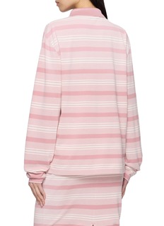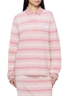 A relaxed interpretation of classic sportswear, this long-sleeve polo top is defined by soft horizontal stripes and a fluid silhouette. Crafted in breathable cotton, it reflects Prada’s instinct for elevating casual codes—ideal layered over skirts or worn loose with tailored trousers.
