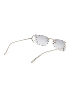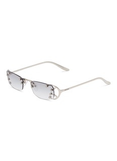 Crafted in sleek silver-tone metal, these rectangular sunglasses express Prada’s contemporary refinement through a rimless construction anchored by exposed screw detailing. The cool grey gradient lenses bring a polished, modern edge—perfect for elevating minimalist looks with architectural clarity.