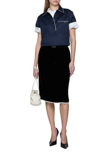 Clean lines meet subtle deconstruction in this polo shirt, where Prada sharpens a classic silhouette with contrast raw-edge trims and a structured patch pocket. The crisp button placket and tailored collar lend polish, while the exposed inner detailing introduces a refined, subversive twist. A versatile piece that balances ease with modern precision.