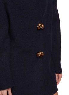 A timeless silhouette meets modern luxury in this Prada Shetland jacket. Rendered in a rich blue and tailored meticulously with gold-tone buttons to add a touch of opulence. Its oversized fit and minimalist design make it a versatile statement, elevating any ensemble with understated confidence.