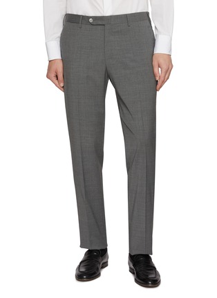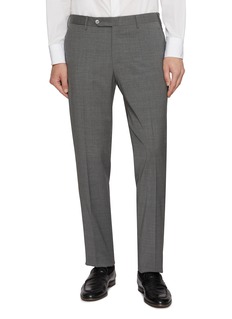 Engineered for movement and modern schedules, these dress pants blend wool’s natural refinement with technical fibres for a polished yet practical finish. Cut with a sharp flat front, they transition seamlessly from business travel to long office days, pairing effortlessly with crisp shirting or relaxed tailoring.