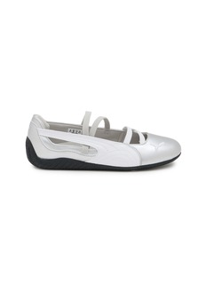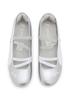 Elevate your everyday ensemble with the sleek sophistication of the PUMA silver ballet flats. These flats are designed with a modern metallic finish, accented by the iconic white PUMA formstrip that adds a subtle sporty touch. The elastic straps ensure a snug, comfortable fit, making them ideal for day-long wear.