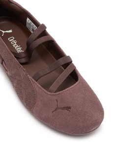 These Puma ballet flats merge sporty functionality with feminine charm. Presented in a soft, earthy taupe shade, they boast a suede upper that offers a comfortable fit and a luxurious feel. The innovative design features elastic straps that provide secure support while adding a stylish, contemporary look. These flats are perfect for those who prefer an active lifestyle but do not want to compromise on style.
