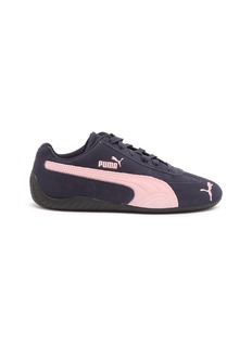 These Puma sneakers feature a chic and understated design, perfect for those who appreciate a touch of elegance in their sportswear. The deep navy body is beautifully contrasted with a soft pink Puma stripe, providing a subtle yet striking color combination. Crafted with a durable suede upper and a robust rubber sole, these shoes offer both comfort and longevity. The sleek, low-profile silhouette makes them versatile for styling with various outfits, from casual jeans to more athletic gear.
