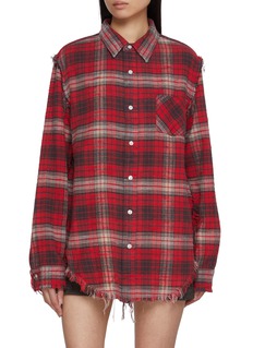 Each design from R13 is a masterpiece of artistic ingenuity. This shirt features a timeless checkered pattern that adds a touch of classic charm, while the shredded seam details bring an edgy and contemporary twist. The drop shoulder and relaxed fit make for a laid-back weekend outfit.